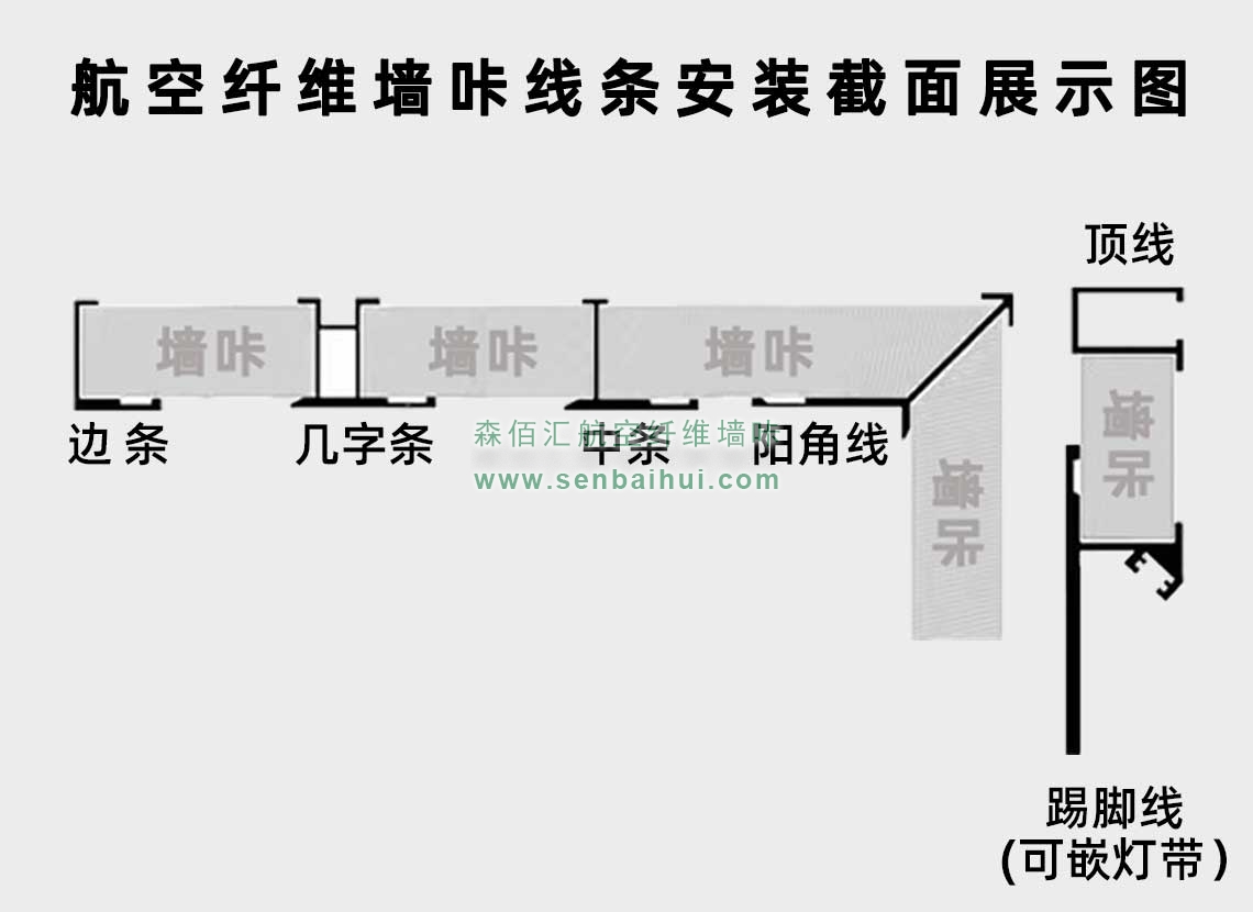 航空纤维墙咔铝合金带灯中条(哑黑氧化)